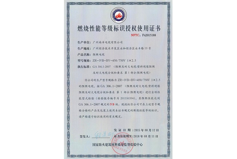 參與了國家電線電纜質量監(jiān)督查驗中心技術標準TICW8-2012《額定電壓6kV(Um=7.2kV)到35kV(Um=40.5kV)擠包絕緣耐火電力電纜》的起草作業(yè)。